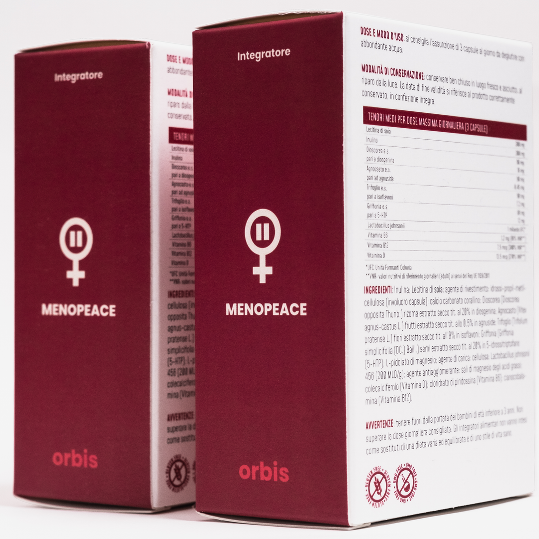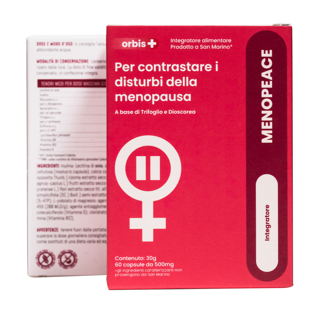 MENOPEACE è un integratore alimentare a base di Trifoglio e Dioscorea, che aiutano a contrastare i disturbi della menopausa. La Griffonia controlla il senso di fame, supporta il normale tono dell'umore e il benessere mentale.